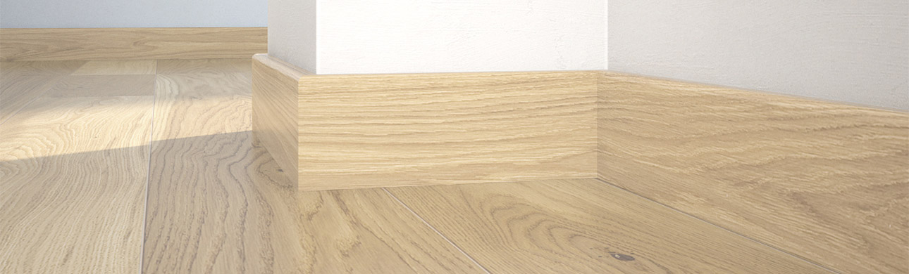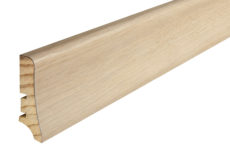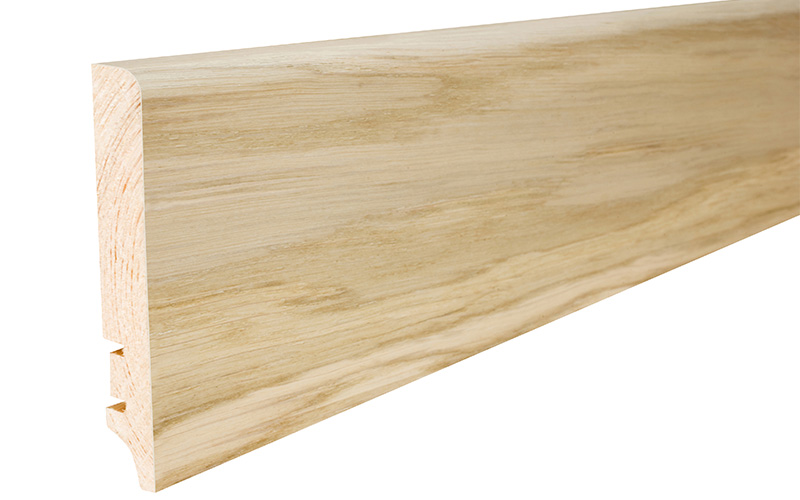 A fehérre lakkozott Tölgy szegélyléc válogatott lombos fából készült réteggel van befejezve, amely meghatározott színnel rendelkezik. Rendkívül tartós és méretstabil. Az elektromos vezetékek számára kialakított vájatok révén nagyon funkcionális, és emellett tiszta és elegáns megjelenést biztosít.