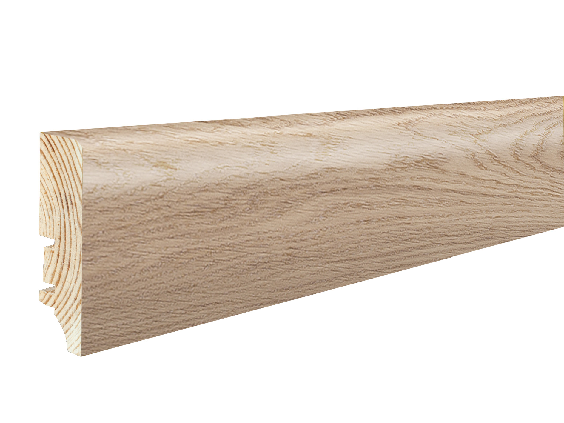 A Sense Tölgy szegélyléc válogatott lombos fából készült réteggel van befejezve, amely meghatározott színnel rendelkezik. Rendkívül tartós és méretstabil. Az elektromos vezetékek számára kialakított vájatok révén nagyon funkcionális, és emellett tiszta és elegáns megjelenést biztosít.