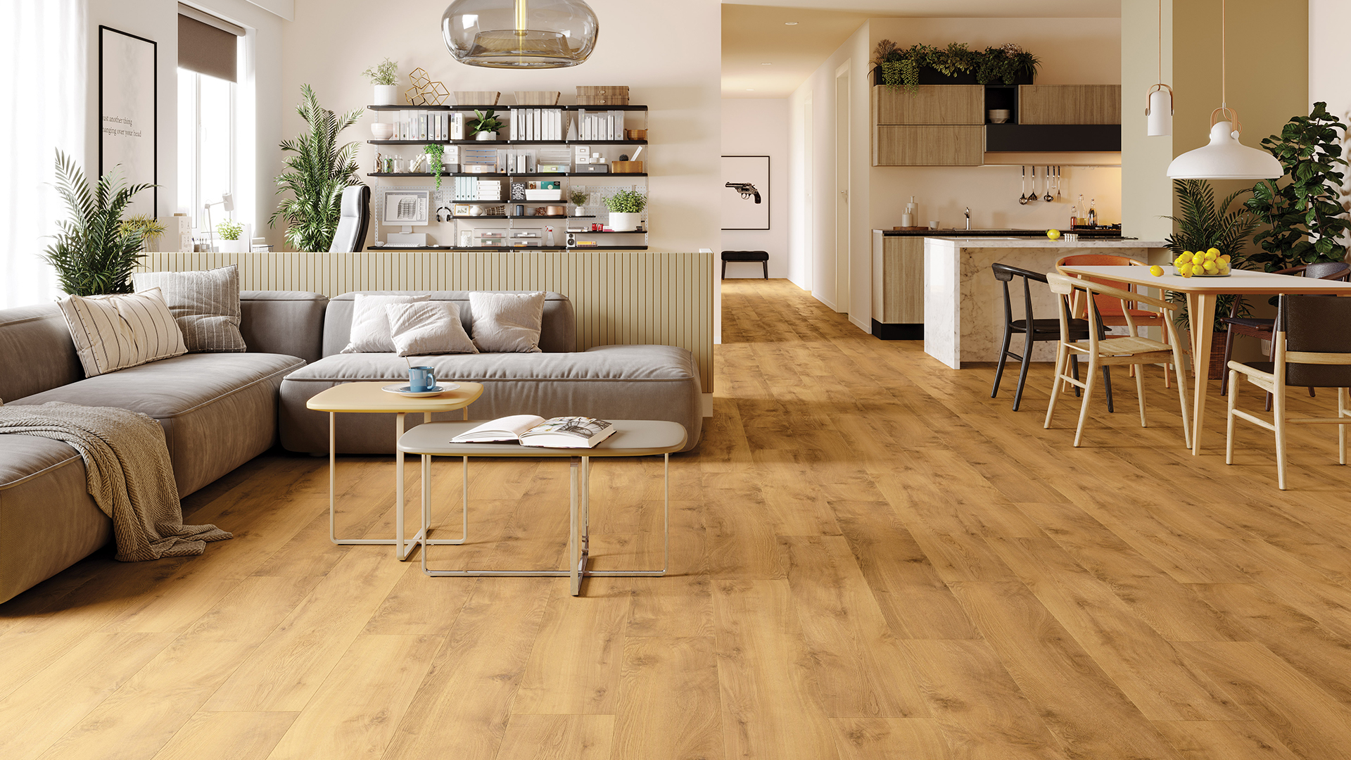 Wyobraź sobie fale na bezkresnych, złocistych oceanach jęczmienia, kładzionych wiatrem. Znasz ten letni żar, ten zapach nadchodzącej burzy? Rozświetl i ogrzej swój dom złotym blaskiem tej niezwykłej podłogi.