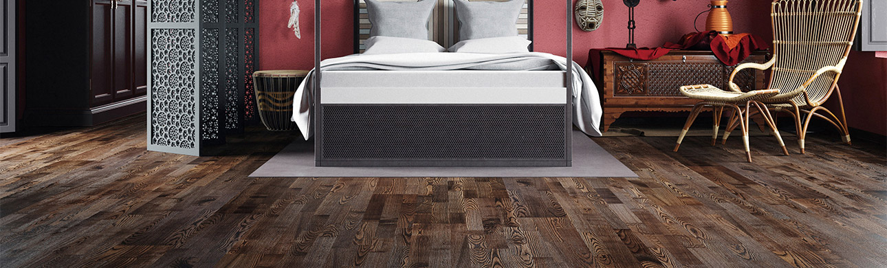 A Coffee Molti padlónak a csiszolásos eljárás adta a karakterét. A természetesen kemény hamut itt félmatt lakk is védi.