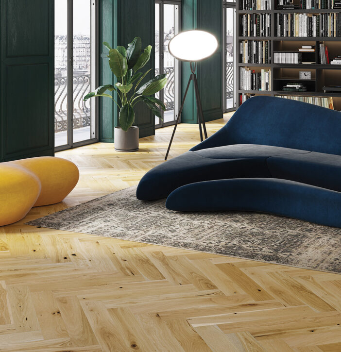 A Grand Canyon Herringbone enyhén rusztikus karakterrel rendelkezik, amelyet a padlók és a szélek bevágásával érnek el. A padló természetes olajjal van bevonva.