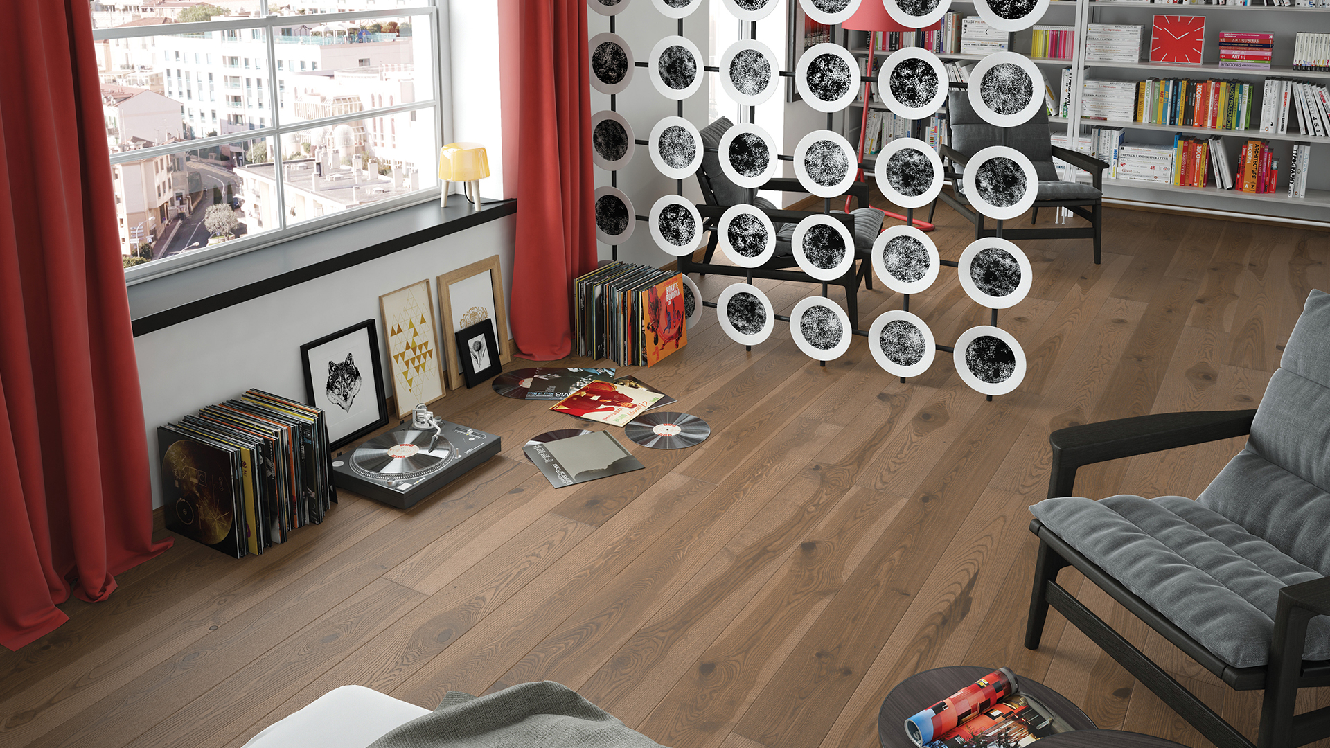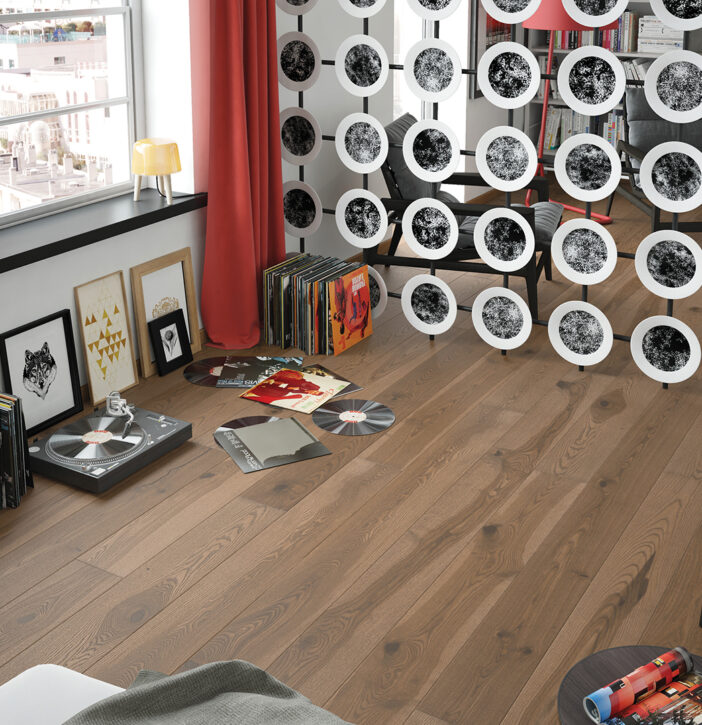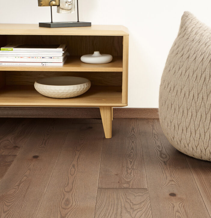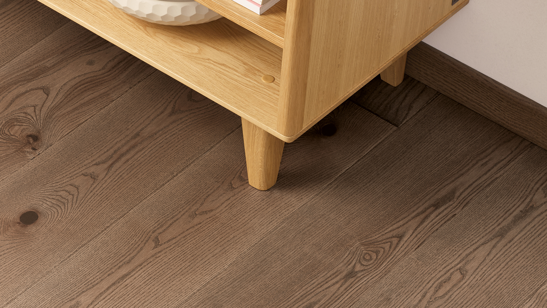Eredeti, természetben gazdag és világosbarna kőrisfa padló, jellegzetes faerezettel. A fa szépségét a csiszolási eljárás és a természetes olajozás még jobban kiemeli. A padlók élei 4 oldalú levágással optikailag megnyúltak.