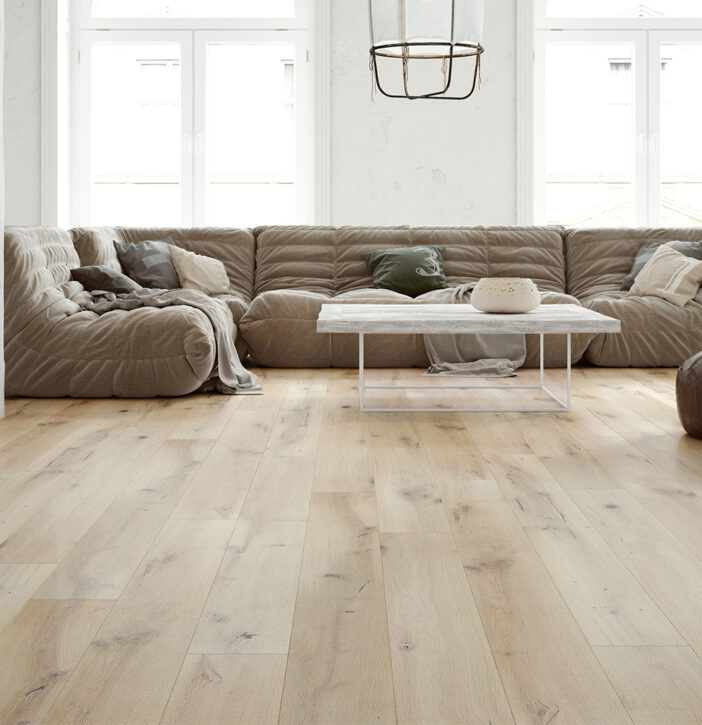 A fa szerkezetét az Ivory Grande padlóburkolatban a csiszolás egyértelműen kiemeli, a széleit pedig levágás határozza meg. A tábla finoman színezett, természetes olajjal dúsított.