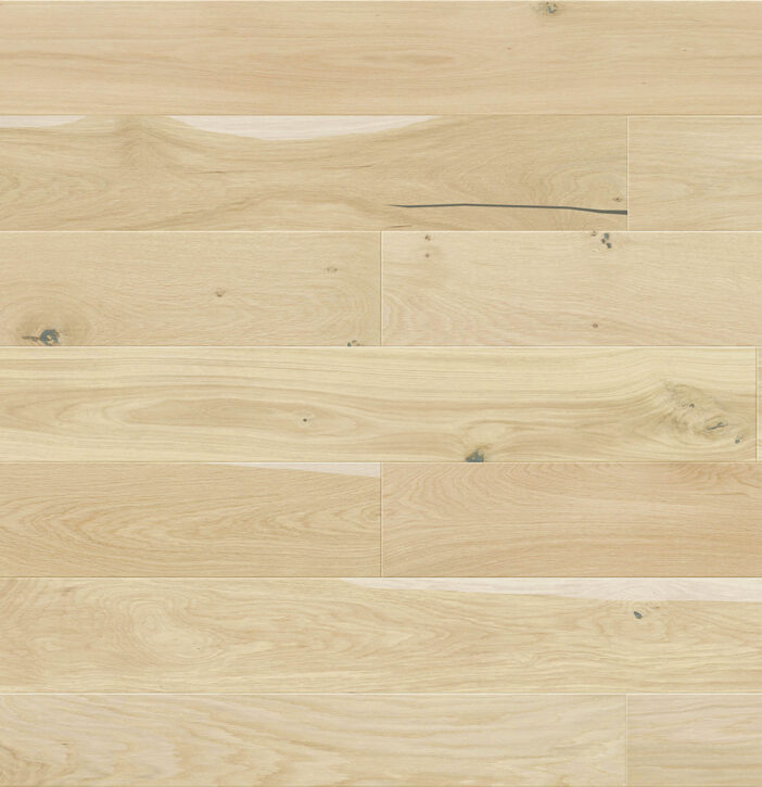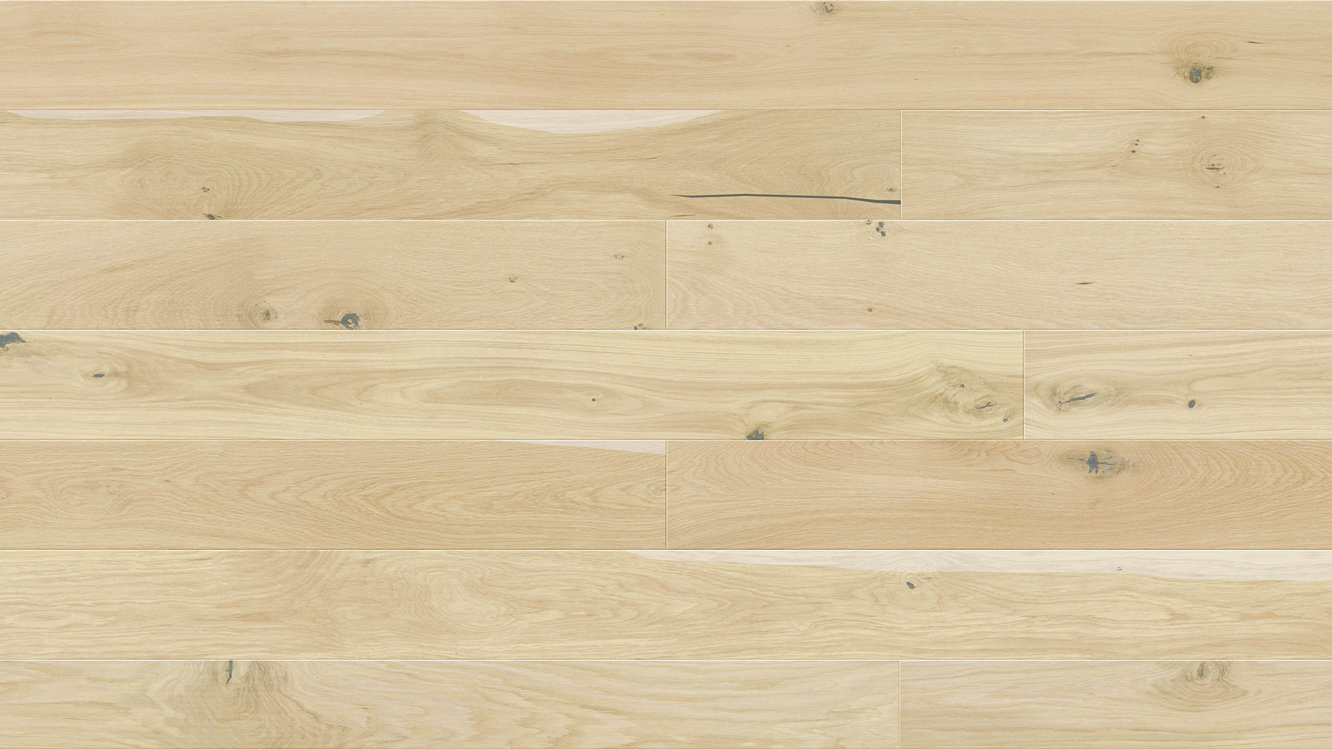155 mm széles, enyhén krémes színű 1-sávos padló. A négyoldalas mikro-levágás a karcsúság benyomását kelti. Matt lakkal bevonva.
