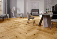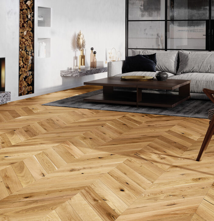 Erősen rusztikus megjelenésű és természetes színű tölgyfa padló. A fa szépségét a csiszolás hangsúlyozza, a 4 oldalú mikro-bevágás pedig karcsú megjelenést kölcsönöz neki. Matt lakkozással készült.
