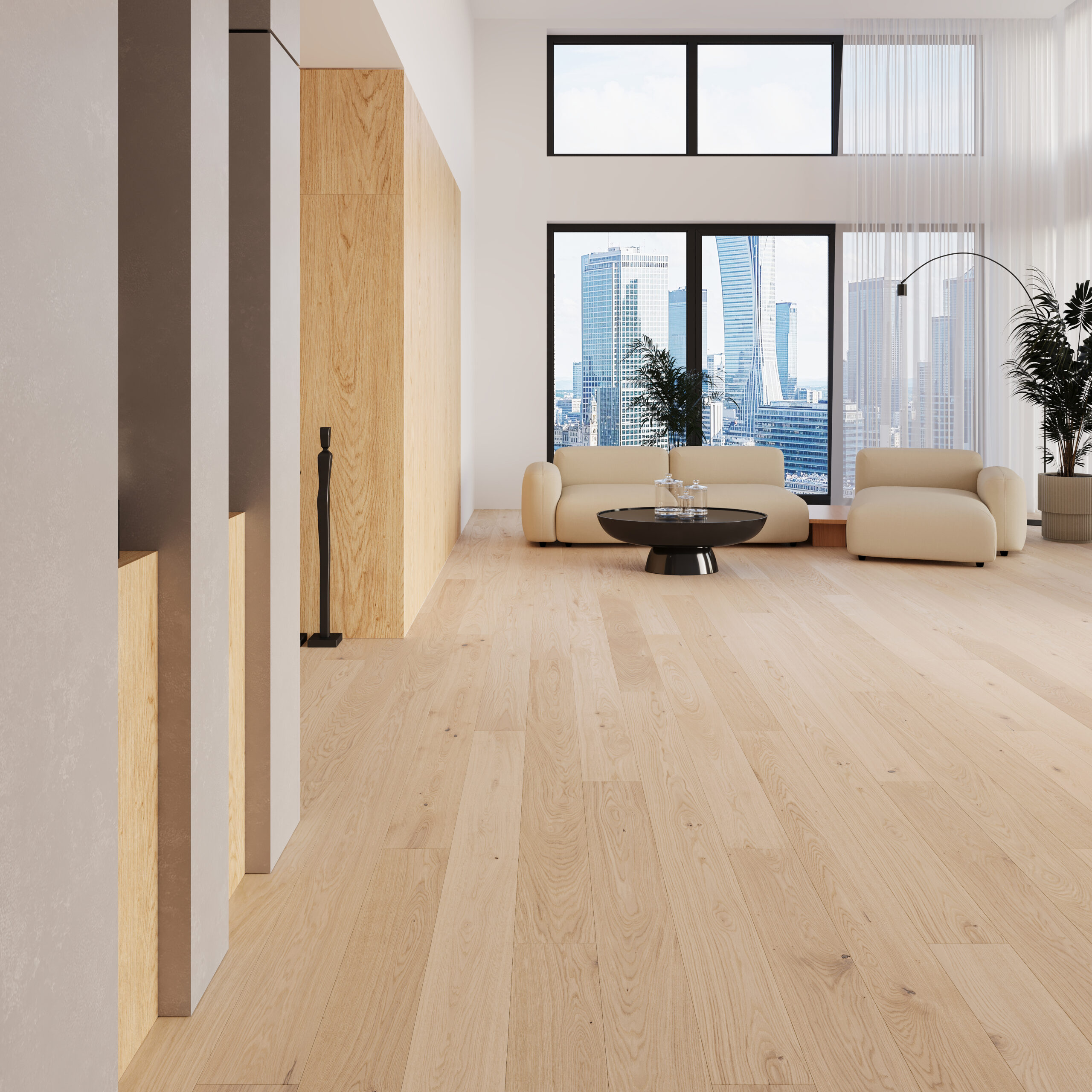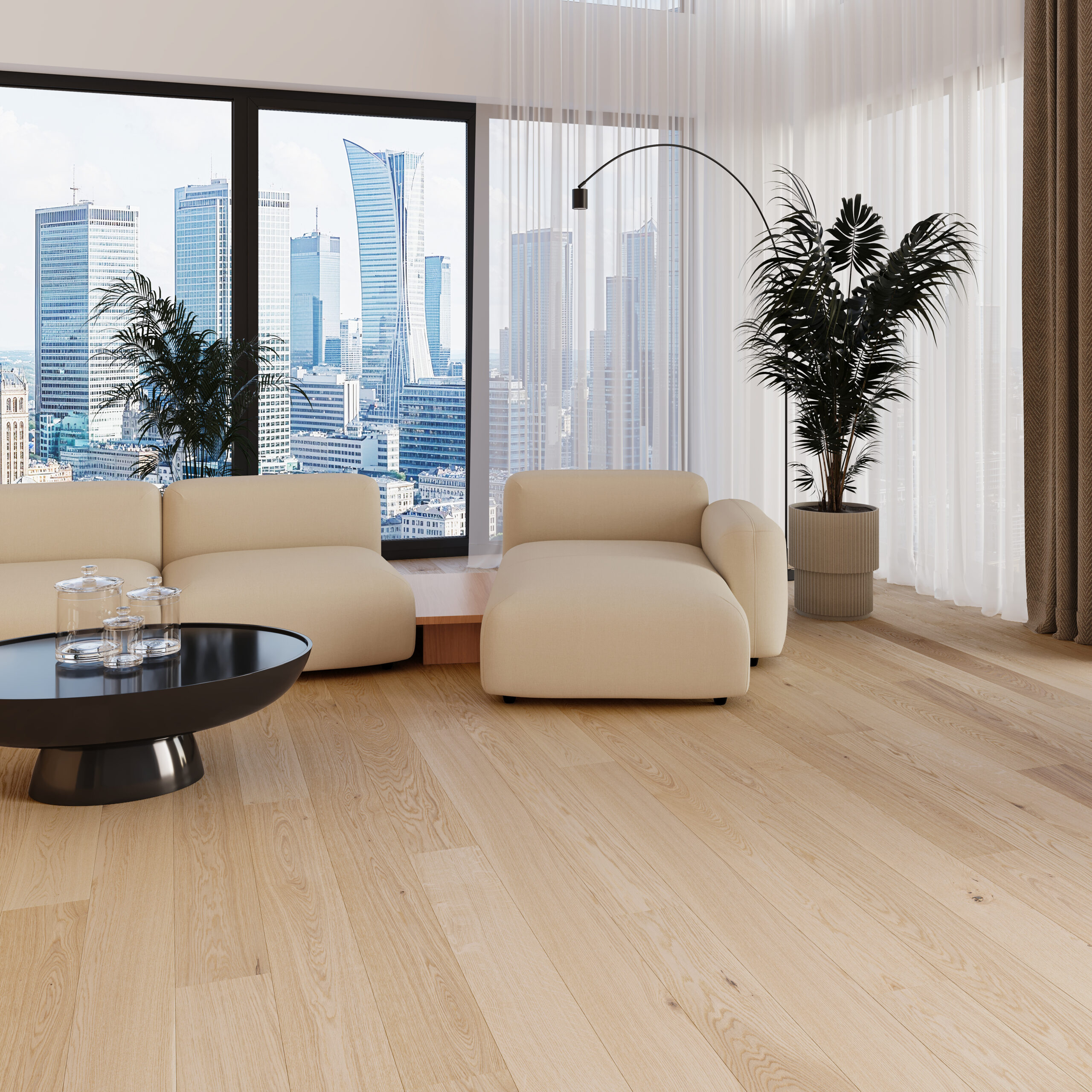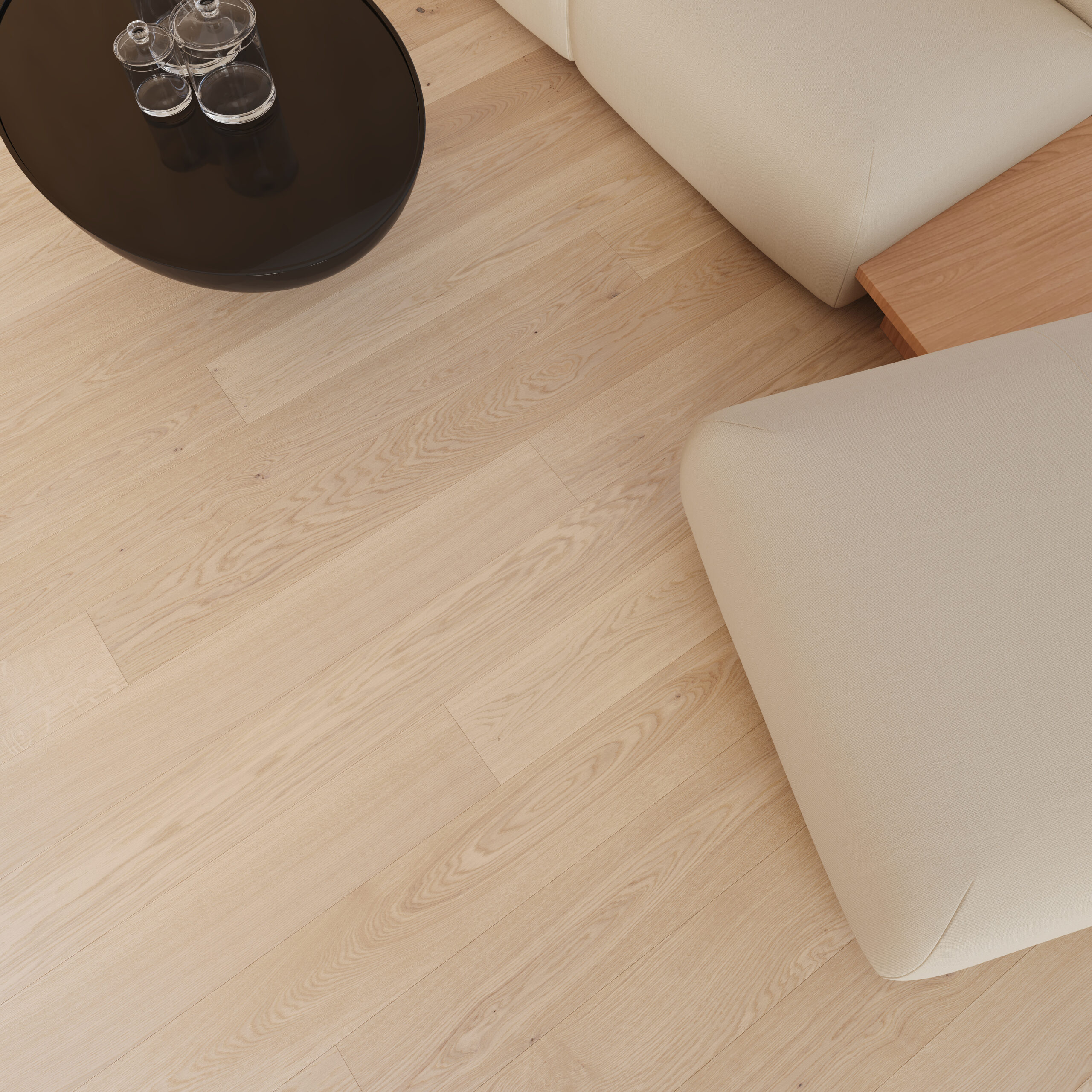 Fehérre meszelt sima tölgyfa padló, amelyet a szürke enyhe árnyalatai emelnek ki. A finom árnyalatok miatt ez a padlólap ideális olyan helyiségekbe, amelyekben azt a tágas érzést szeretné elérni, amire mindig is vágyott. A csiszolás adja a padló különleges karakterét. Természetes olajjal van bevonva.