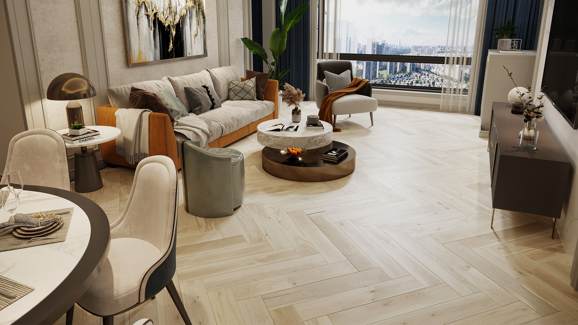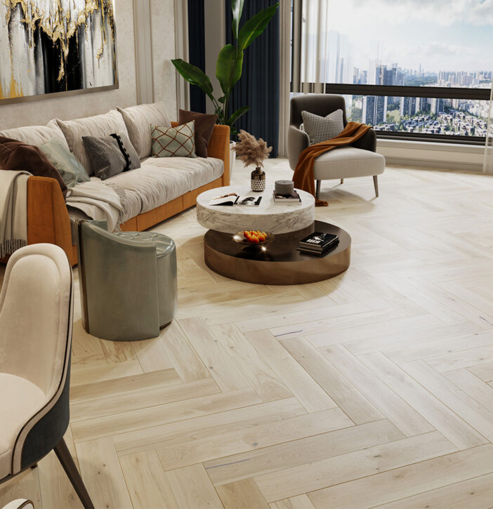 Finom fehér árnyalatú tölgyfa padló. A 4-oldalas mikro-bevágás karcsúsítja és kifinomultabbá teszi, a csiszolás pedig az egyedi szemcsemintázatot még jobban kiemeli. Természetes olajjal bevonva.