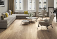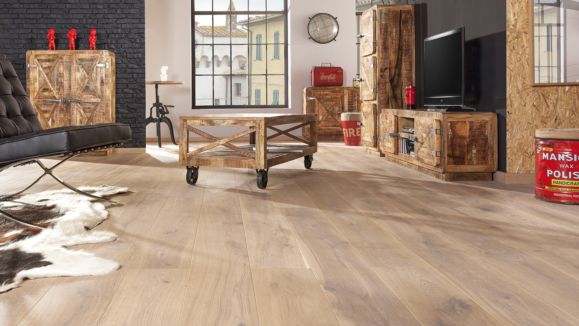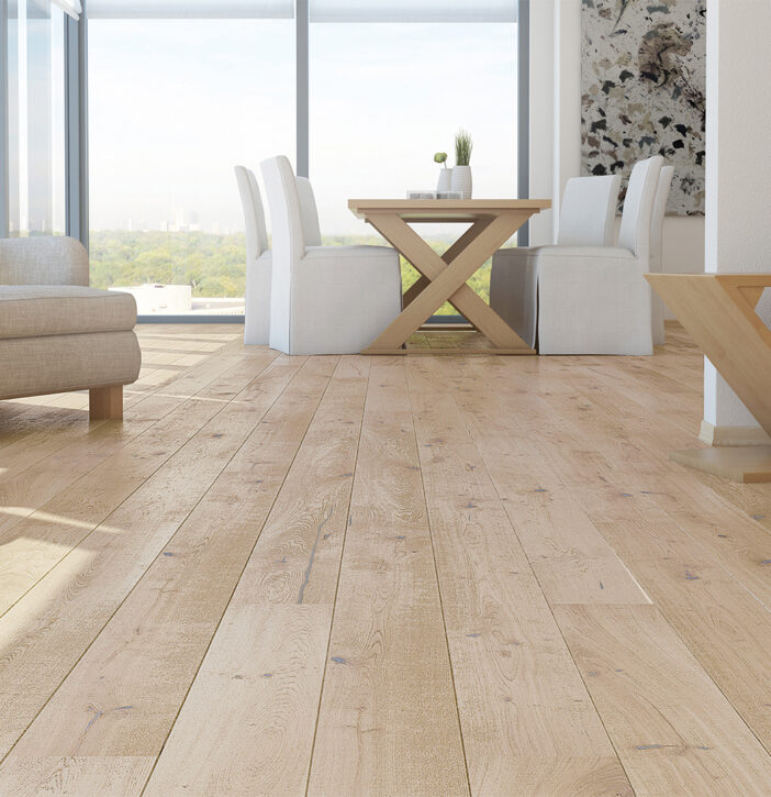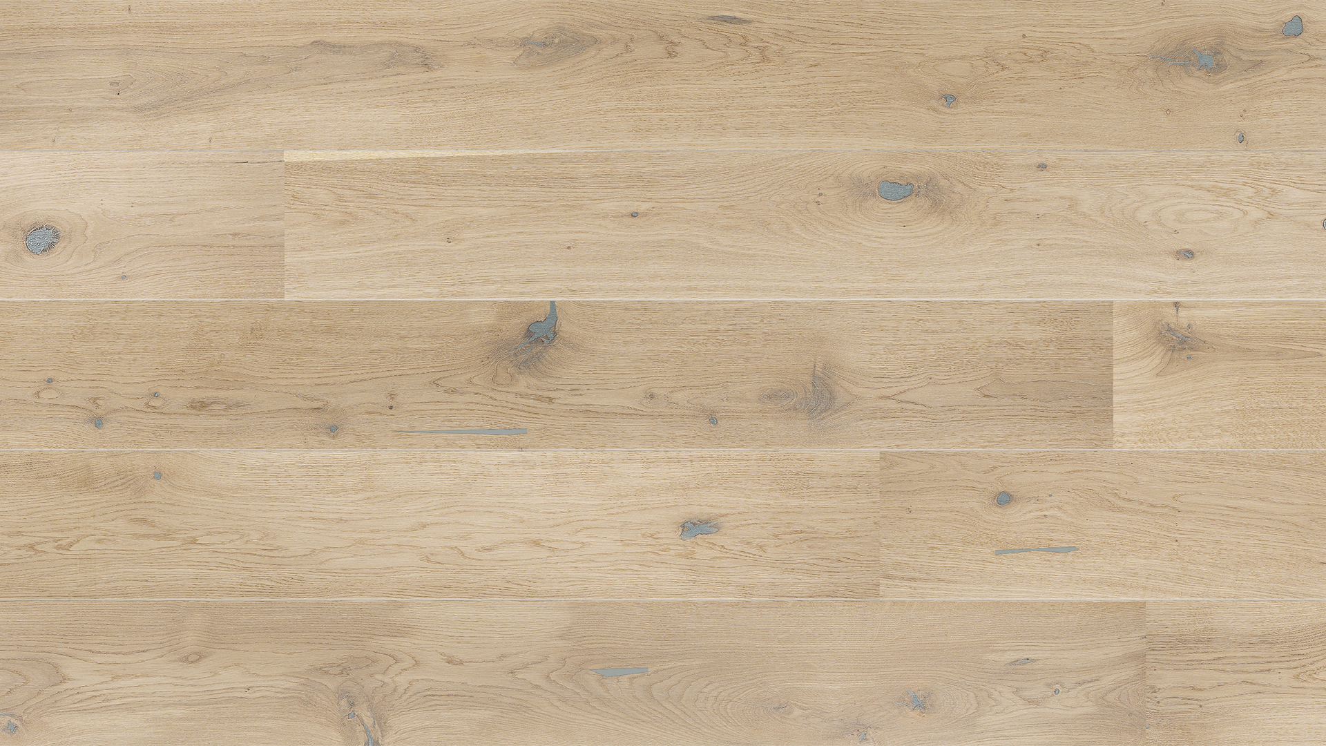Egylamellás tölgy padló, 207 mm szélességű és 2200 mm hosszúságú, matt természetes olajjal krémszínnel bevonva. A sok természetes fa jelleg rusztikus megjelenést kölcsönöz a Sense padlónak. A kétoldali fázolás optikailag megnyújtja a deszkát és fokozza annak természetes megjelenését.