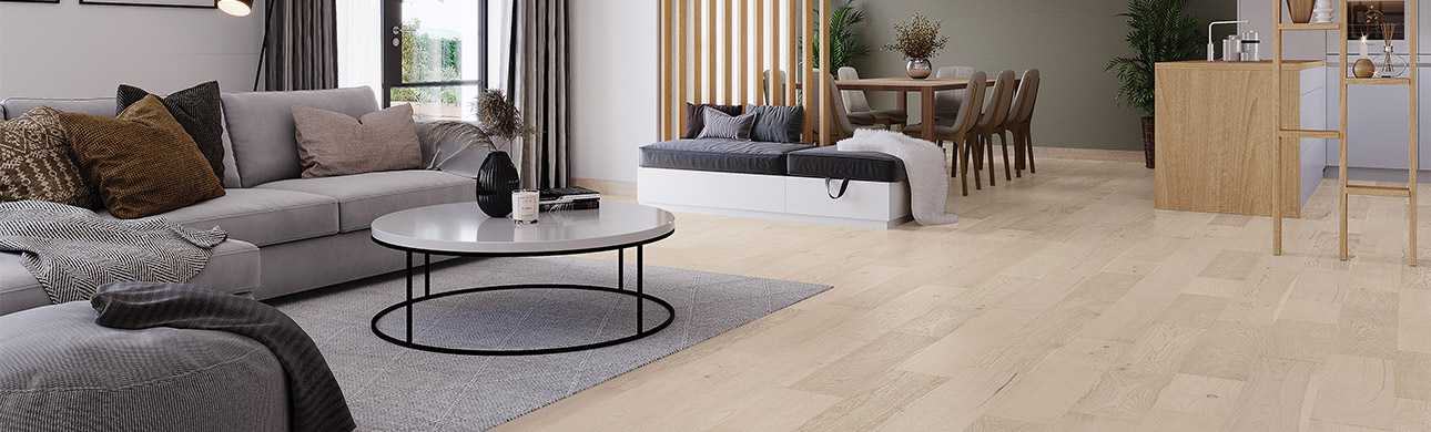 Białe barwienie dodaje wnętrzu lekkości oraz delikatności. Struktura drewna wprowadza element naturalności do wnętrza. Idealna baza do aranżacji z kontrastowymi czerniami czy głębokimi szarościami. Idealnie sprawdzą się organiczne dodatki, szkło czy kamień.