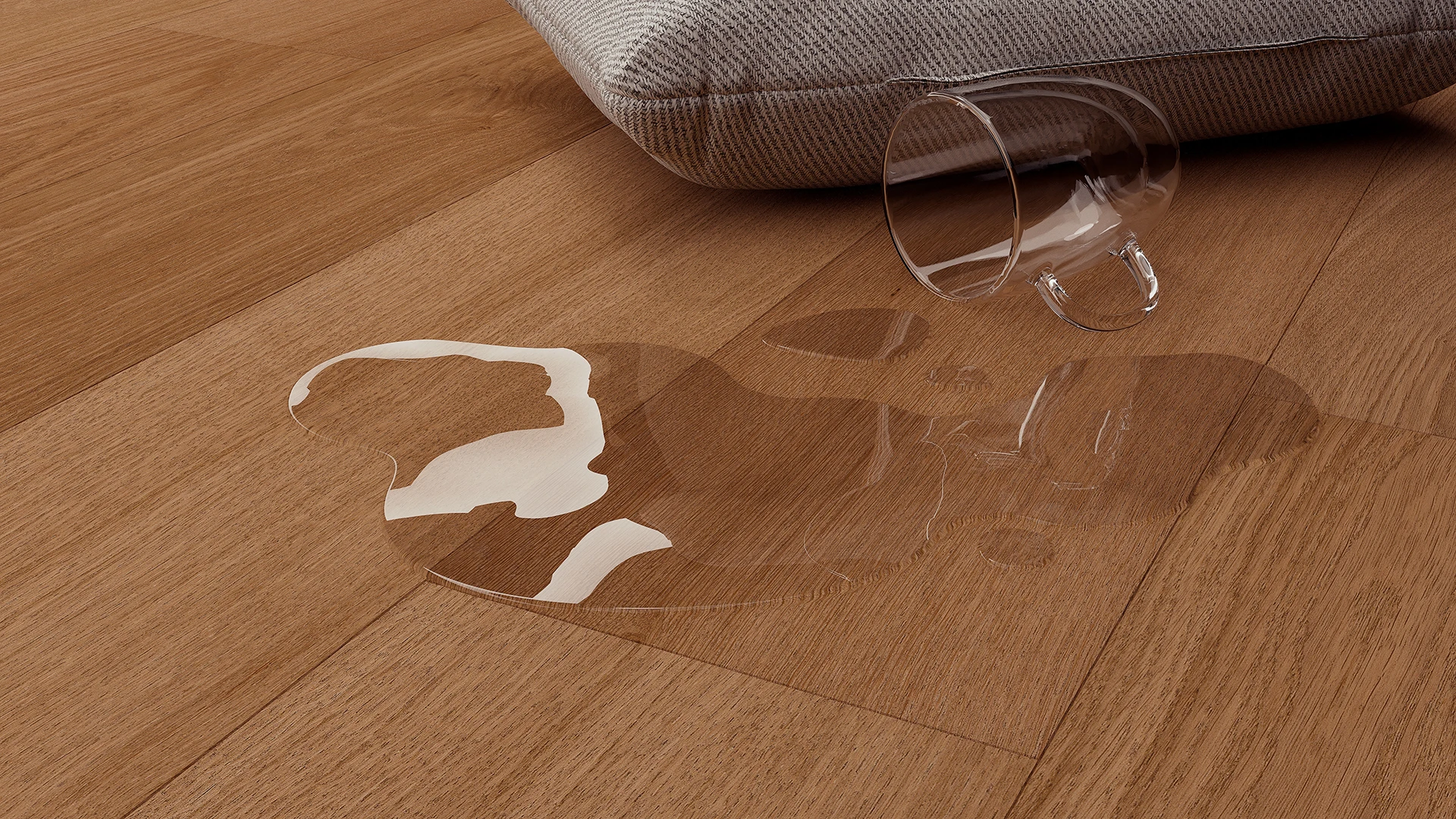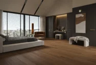 A meleg, világosbarna tölgyfa padló természetes és otthonos hangulatot kölcsönöz a belső térnek. A finoman sötétített fa kiemeli a tölgy karakterét és finom erezetét.