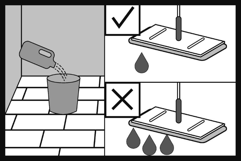 - Használhat nedves rongyot a javasolt padlóápoló szerrel vagy anélkül. Tisztítás után ne hagyjon nedves nyomokat a padlón.