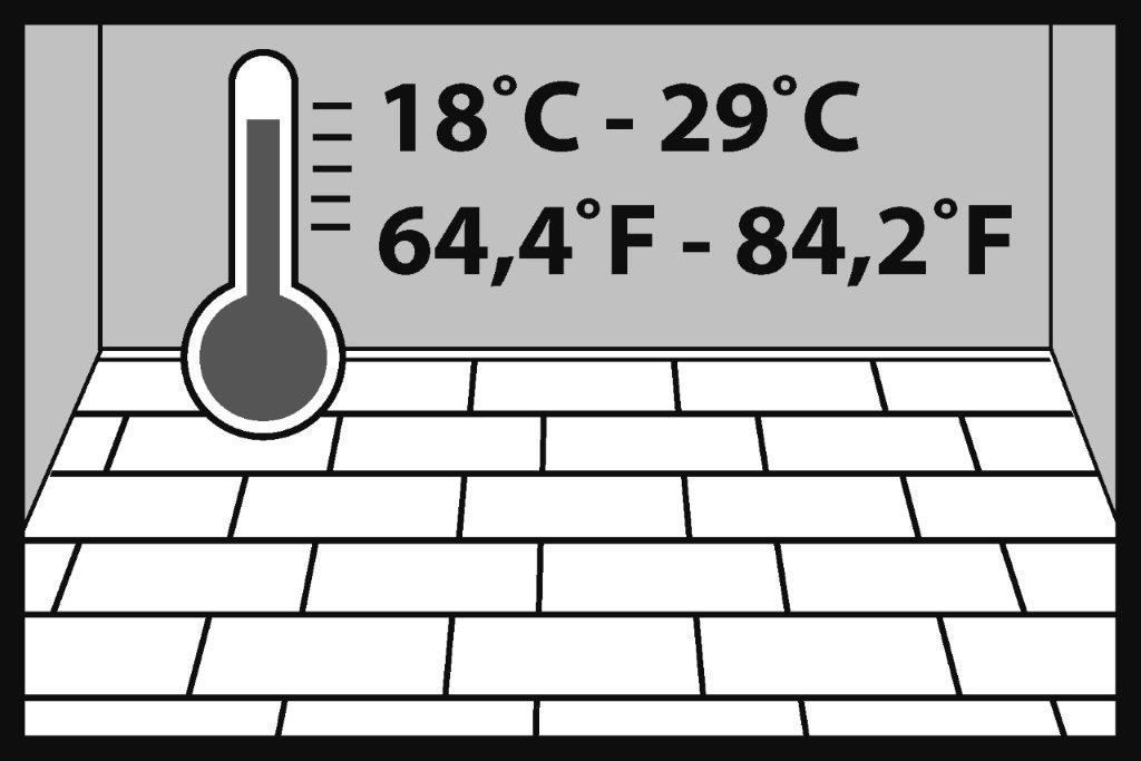 Használat közben a helyiség hőmérsékletének +18 °C és +29 °C között kell lennie.